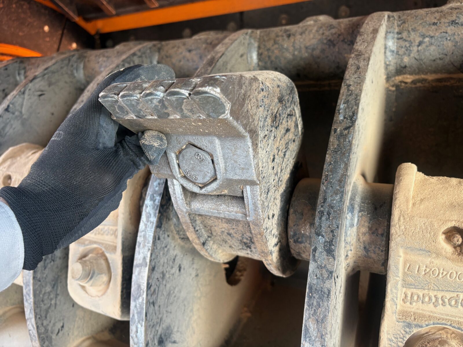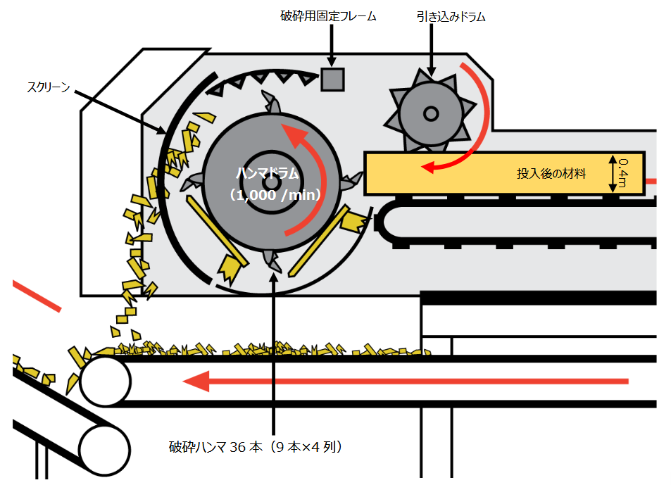破砕機紹介2025年11月4日 破砕機の内部は安全面に配慮し、エンジン起動時には開きません。 この頑丈な爪が9つ配置された列が4つあり、合計36個の爪で木質廃材を細かく破砕していきます。 一時間で約12.5t、1日に約100tの破砕が性能上は可能です。 https://sep.shimada-c.co.jp/wp-content/uploads/2025/11/IMG_4769.jpg 1200 1600 shimada https://sep.shimada-c.co.jp/wp-content/uploads/2025/08/sep_title_v5-1-1030x222.png shimada2025-11-04 11:35:402025-11-05 07:57:49破砕機紹介